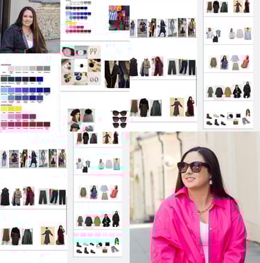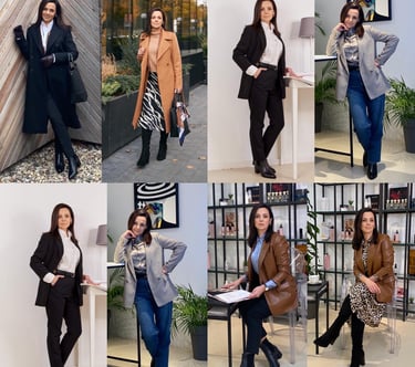 Padedu susikomplektuoti derinius atsižvelgiant į pasirinktą tematiką ( įvaizdinė, šeimos, verslo...) iš asmeninio turimo garderobo arba drabužių, avalynės, aksesuarų iš parduotuvių.